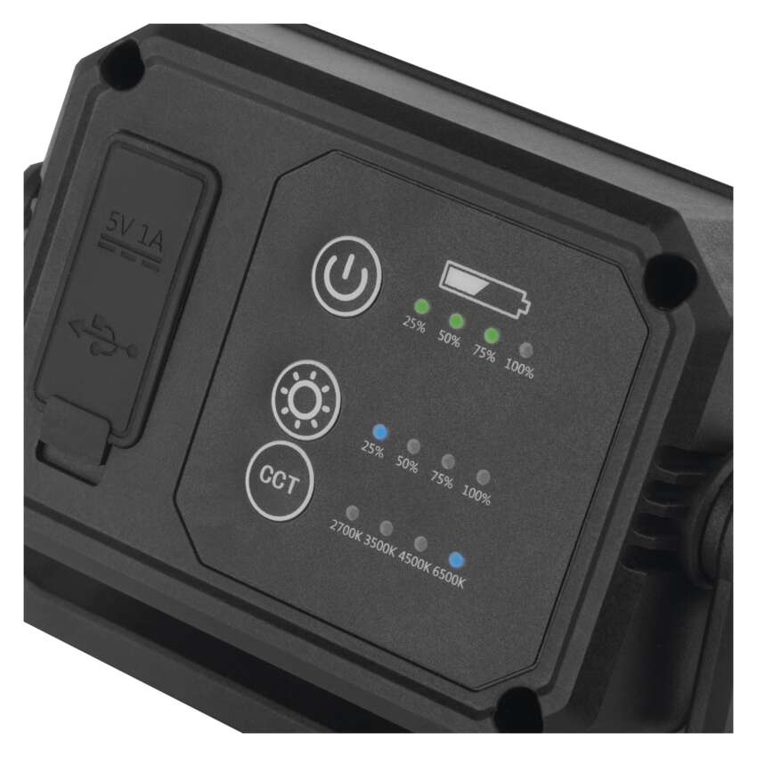 Dieser Scheinwerfer ist wiederaufladbar, so dass Sie nicht vom Stromnetz abhängig sind und ihn praktisch überall einsetzen können.