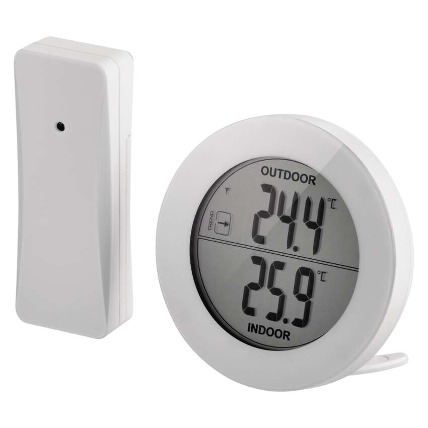 Wie hoch ist die aktuelle Temperatur in Ihrer Wohnung und wie viel Grad hat es gerade draußen? Diese Fragen beantwortet zuverlässig das digitale Funk-Thermometer EMOS. Er misst nicht nur die Außen- und Innentemperatur mit einer Auflösung von 0,1 °C, sondern bietet auch eine praktische Anzeige des Temperaturtrends, zeigt Minimal- und Maximaltemperatur an und hat nicht zuletzt ein neuartiges, elegantes Aussehen.