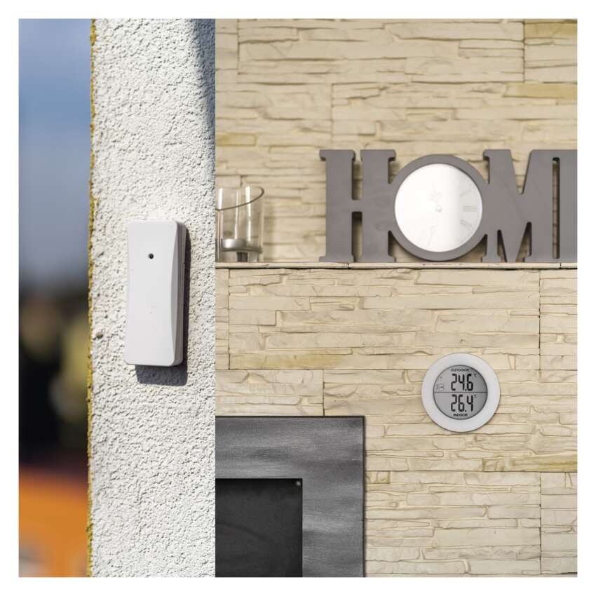 Dieser praktische Helfer verfügt über einen drahtlosen Sensor mit einer Reichweite von bis zu 80 Metern. Die Station wird mit zwei 1,5-V-AAA-Batterien betrieben und der Sensor wird ebenfalls mit zwei 1,5-V-AAA-Batterien betrieben.