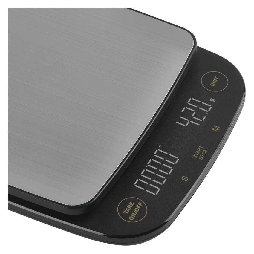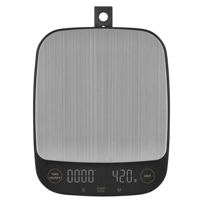 Dank des großen hintergrundbeleuchteten LED-Displays können Sie auch bei schlechten Lichtverhältnissen problemlos sehen. Bei der Arbeit in der Küche werden Sie auch den eingebauten Timer zu schätzen wissen, der beim Kaffeekochen ein wichtiger Faktor ist. Die Waage wird schnell zu einem Helfer werden, den man gerne zur Hand hat.