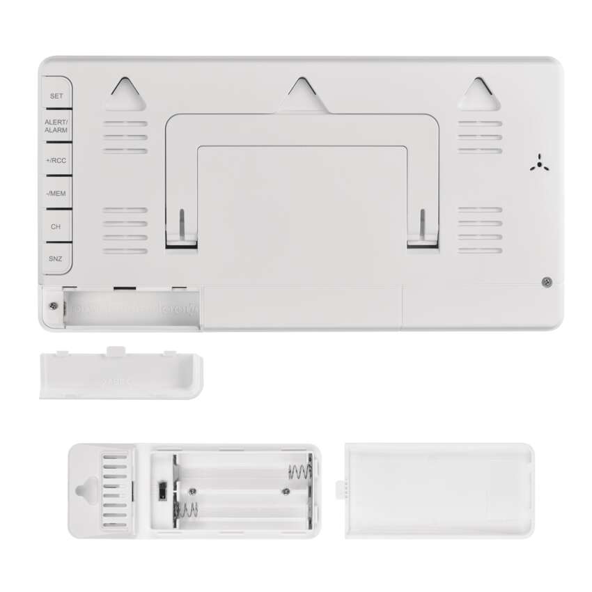 Die Wetterstation unterstützt den Kalender in Tschechisch, Polnisch, Ungarisch und 12 weiteren Sprachen. Das große klare Display macht es leicht abzulesen, und die Tisch- oder Wandmontage ermöglicht es Ihnen, sie überall zu platzieren. Es wird mit 3× AA-Batterien betrieben, die nicht im Lieferumfang enthalten sind.