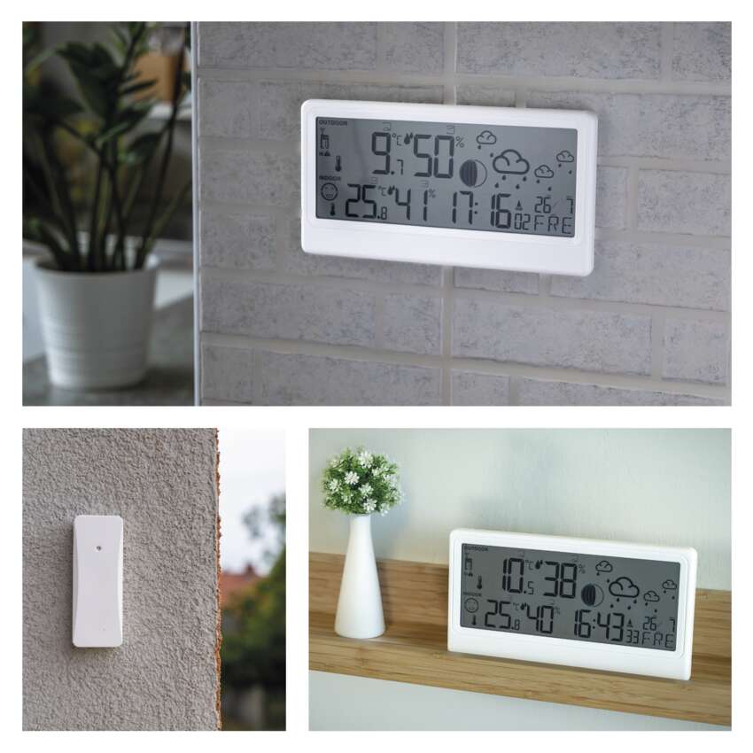 Wir präsentieren Ihnen eine Premium-Wetterstation, die zu einem unverzichtbaren Helfer in Ihrem Zuhause wird. Diese Wetterstation misst Außen- und Innentemperatur und Luftfeuchtigkeit und zeigt Uhr, Datum, Minimal- und Maximaltemperatur oder Mondphase an. Sie sagt zuverlässig das Wetter voraus, gibt Temperaturwarnungen und zeigt Temperaturtrends an. Dank der Komfortstufenanzeige mit fünf Stufen sind Sie immer über die optimalen Bedingungen in Ihrem Zuhause informiert. Die Frostwarnung und der Schimmelalarm sorgen für Ihre Sicherheit und Ihren Komfort. Die praktische Weckfunktion und die DCF-gesteuerte Uhr erleichtern Ihnen den Alltag.