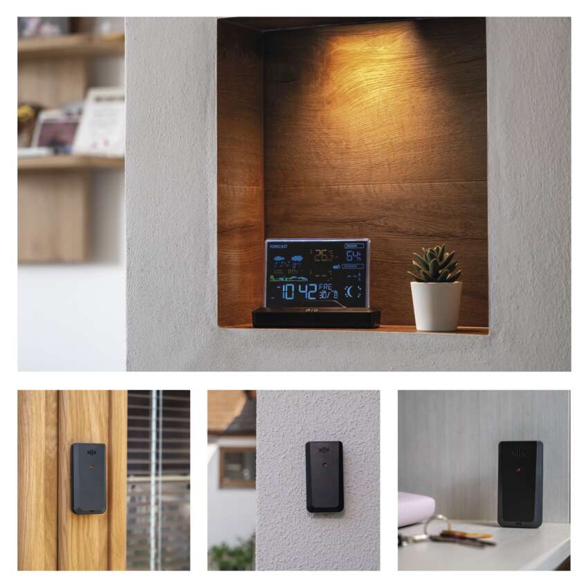 Modernes, rahmenloses Design, besserer Kontrast und dunkles Schwarz. Das farbige LED-VA-Display zeigt alle wichtigen Informationen an, um Sie nicht nur über Innen- und Außentemperatur und Luftfeuchtigkeit zu informieren, sondern zeigt auch 12 Mondphasen, Wettervorhersage, Drucktrend oder Speicher der Min- und Max-Temperaturmessungen. Mit unserer Wetterstation haben Sie immer Wetterinformationen zur Hand.