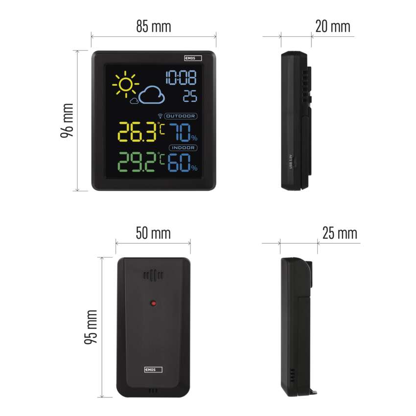 Was können Sie auf dem klaren Display dieser Wetterstation ablesen? Zeigen Sie einfach die Außentemperatur von -50 °C bis +70 °C mit 0,1 °C Auflösung und die Innentemperatur von -10 °C bis +50 °C mit 0,1 °C Auflösung an. Darüber hinaus zeigt die Wetterstation neben der grafischen Vorhersage auch die Innen- und Außenluftfeuchtigkeit und die aktuelle Uhrzeit an.