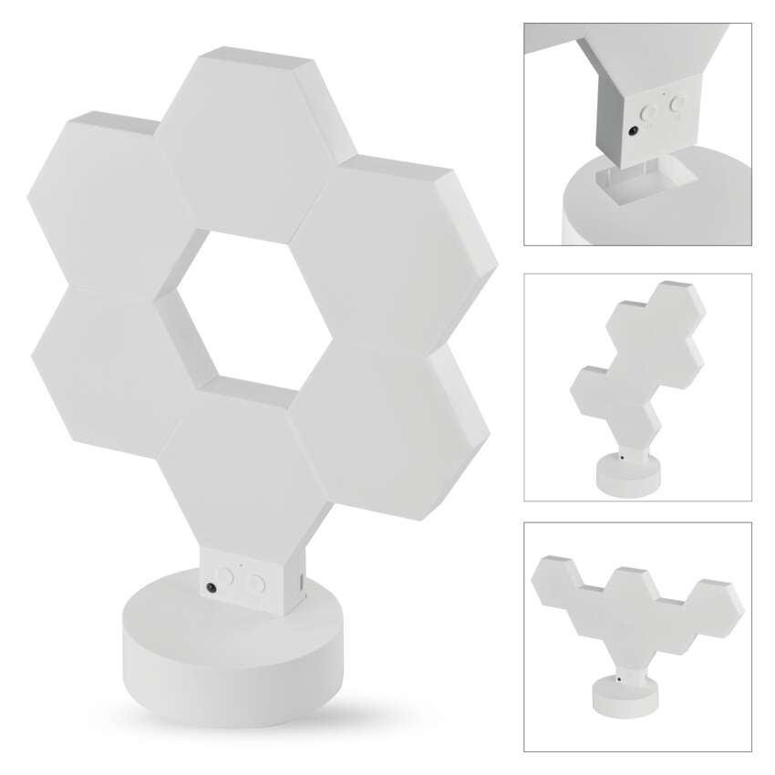 GoSmart LED-Tischleuchte Hexagon weiß, 6-teilig, RGBIC dimmbar, WiFi