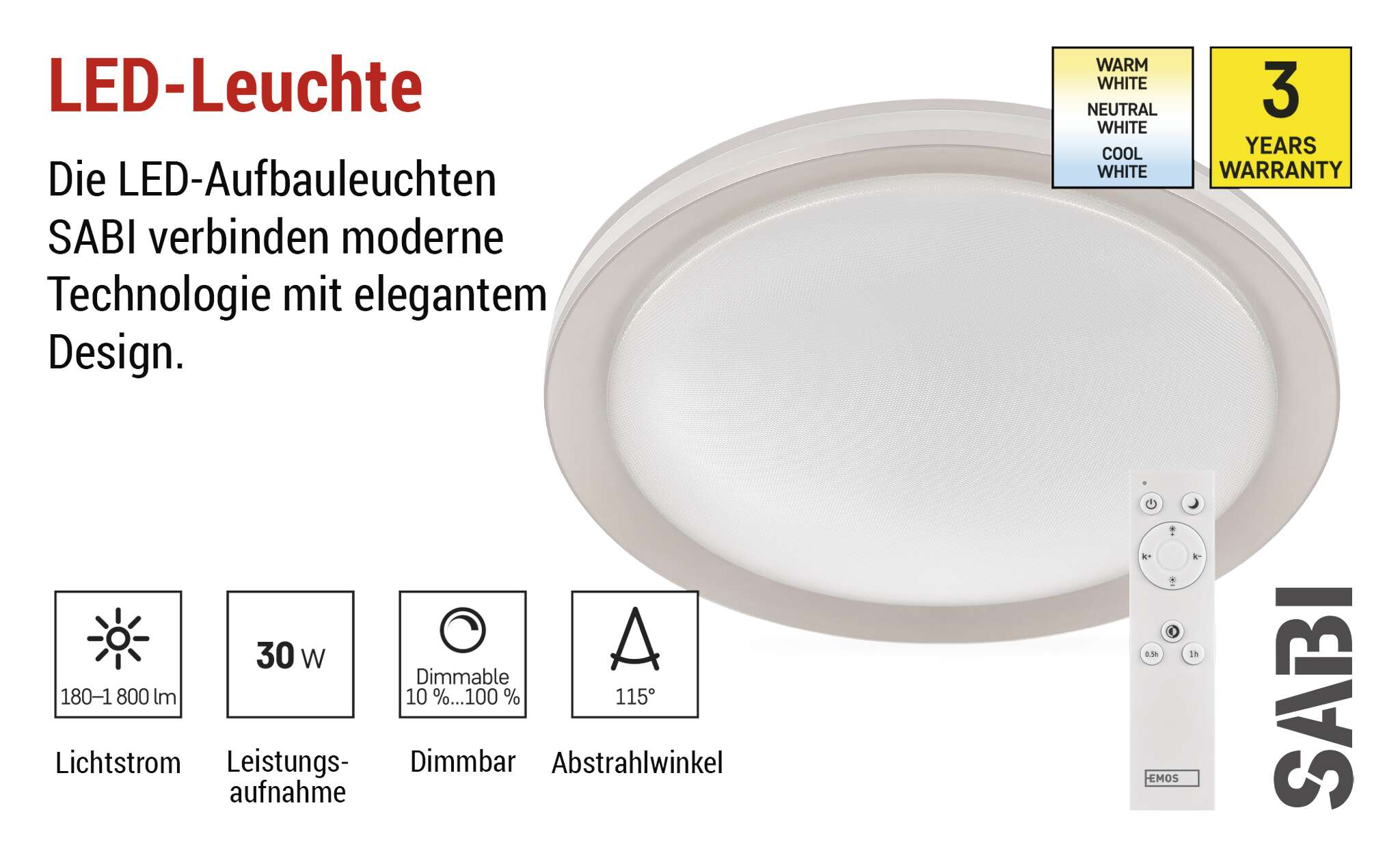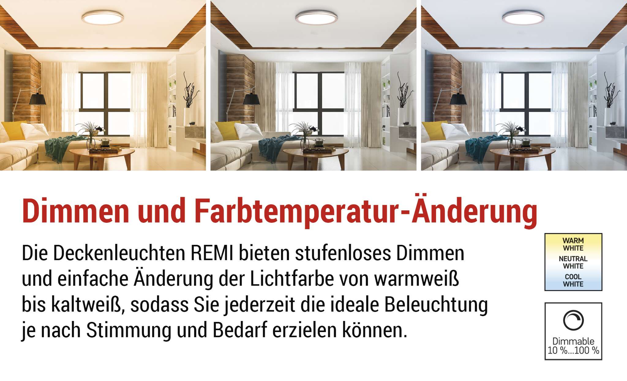 LED Deckenleuchte SABI, rund, 30W, dimmbar, warm/neut./kaltweiß