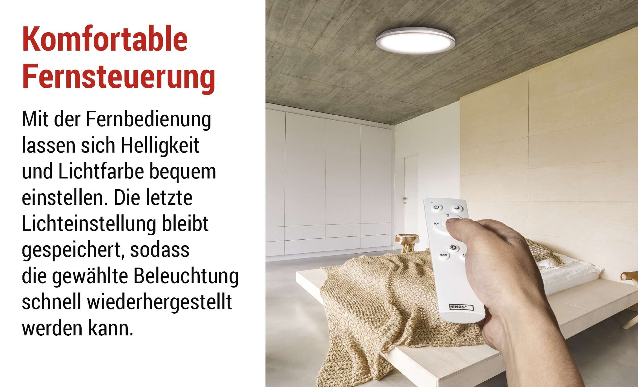 >Sie können ganz einfach zwischen warmem und kühlem Weiß umschalten und nahtlos dimmen, um die perfekte Atmosphäre für jeden Moment zu schaffen - von der ruhigen Abendruhe bis zur konzentrierten Arbeit. Und mit der Memory-Funktion können Sie Ihre letzten Einstellungen oder eine Lieblingsszene speichern, so dass sich Ihr Licht immer an Ihre Vorlieben anpasst. Die Fernbedienung macht den täglichen Gebrauch der Leuchte völlig intuitiv und bequem, und Ihr Raum erhält sofort das perfekte Ambiente.