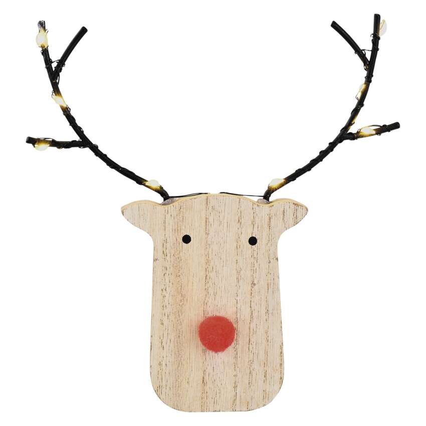 LED Holzdekoration –ren, 16 cm, 2x AAA, innen, warmweiß, Zeitschaltuhr,12 Stk.,display box