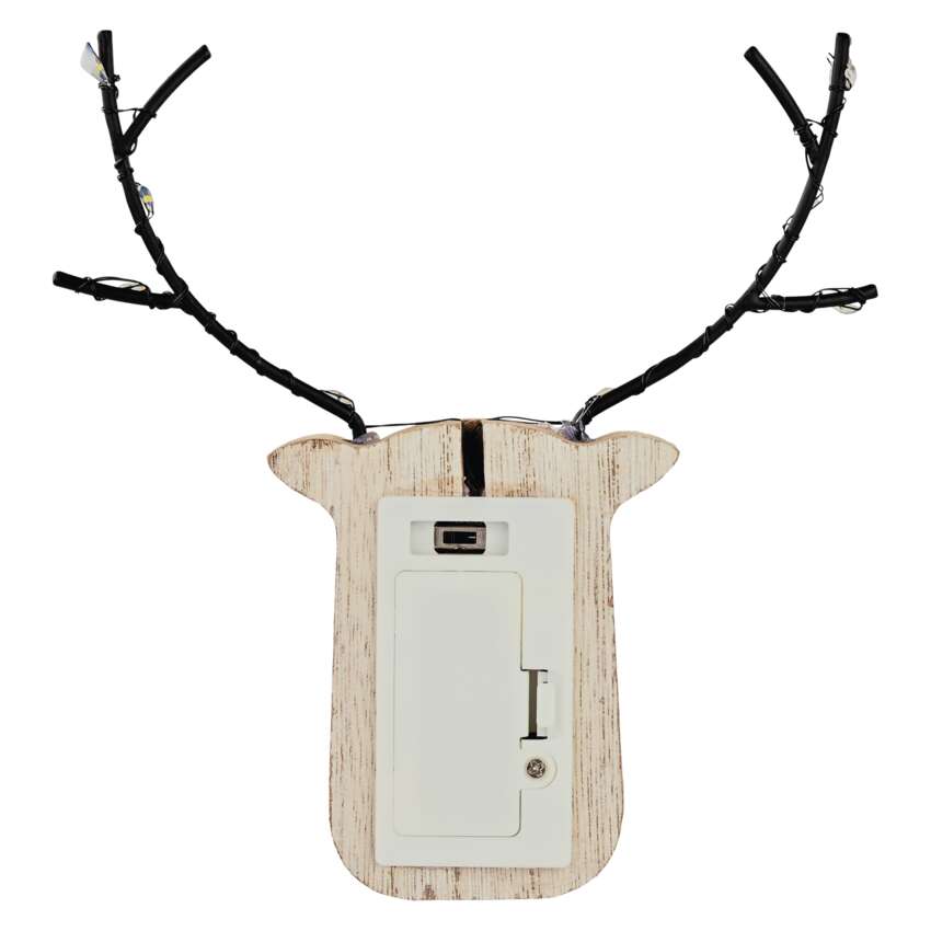 Bringen Sie Weihnachtszauber in Ihr Zuhause mit einer originellen Holzdekoration in Form eines Rentiers mit beleuchtetem Geweih! Dieses minimalistische und elegante Stück aus Echtholz wird jedes Interieur erfrischen und dank des warmweißen Lichts eine gemütliche Weihnachtsatmosphäre schaffen. Ideal für Regal, Tisch oder Schaufenster. Die Dekoration ist außerdem mit einem Timer ausgestattet und wird mit 2× AAA-Batterien betrieben, die in der Verpackung enthalten sind, so dass sie sofort einsatzbereit ist.