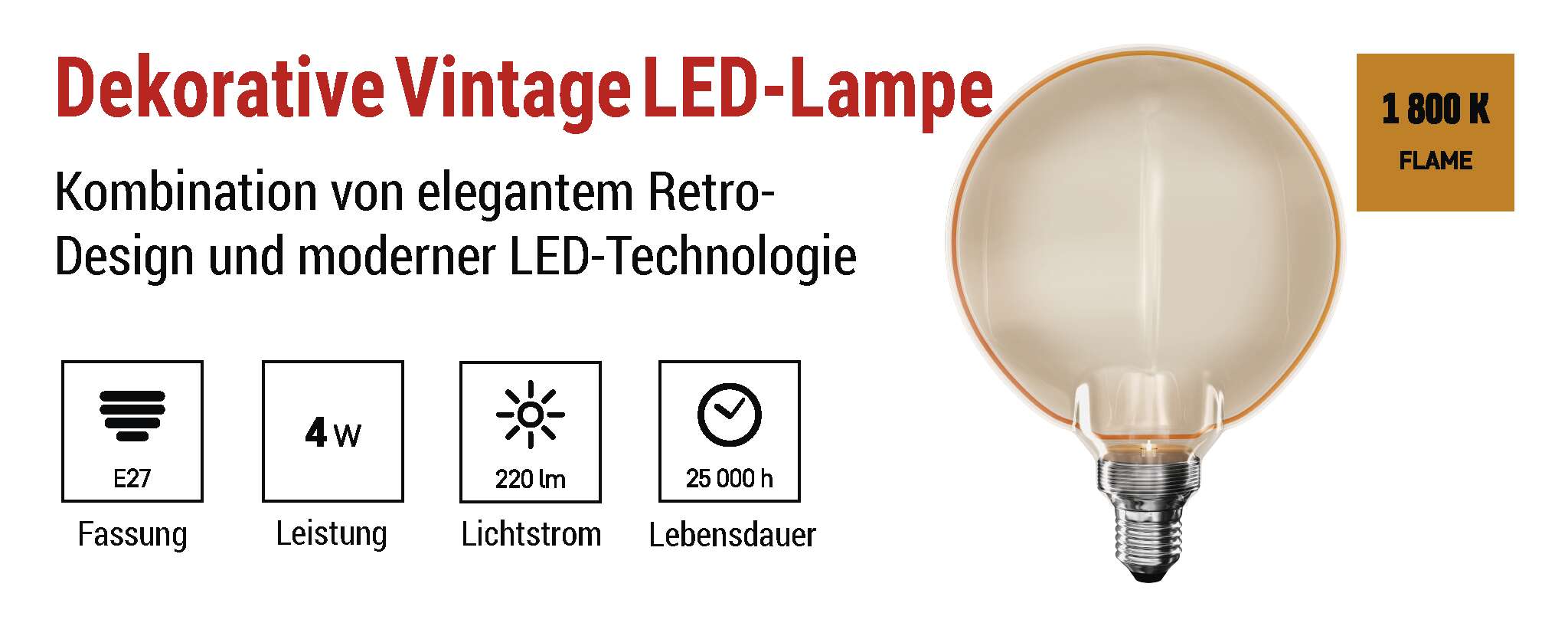 LED Lampe DECO G130OA / E27 / 4 W (22 W) / 220 lm / flame