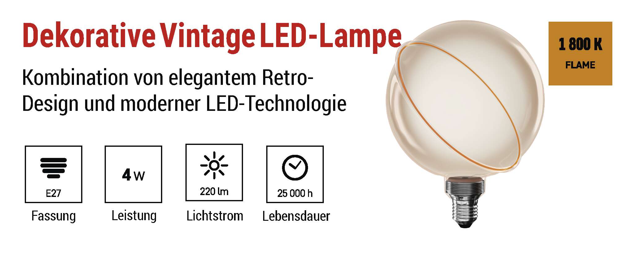 LED Lampe DECO G130SRA / E27 / 4 W (22 W) / 220 lm / flame