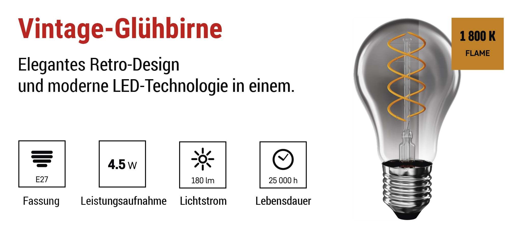 LED Lampe DECO SMOKED A60 / E27 / 4,5 W (19 W) / 180 lm / flame