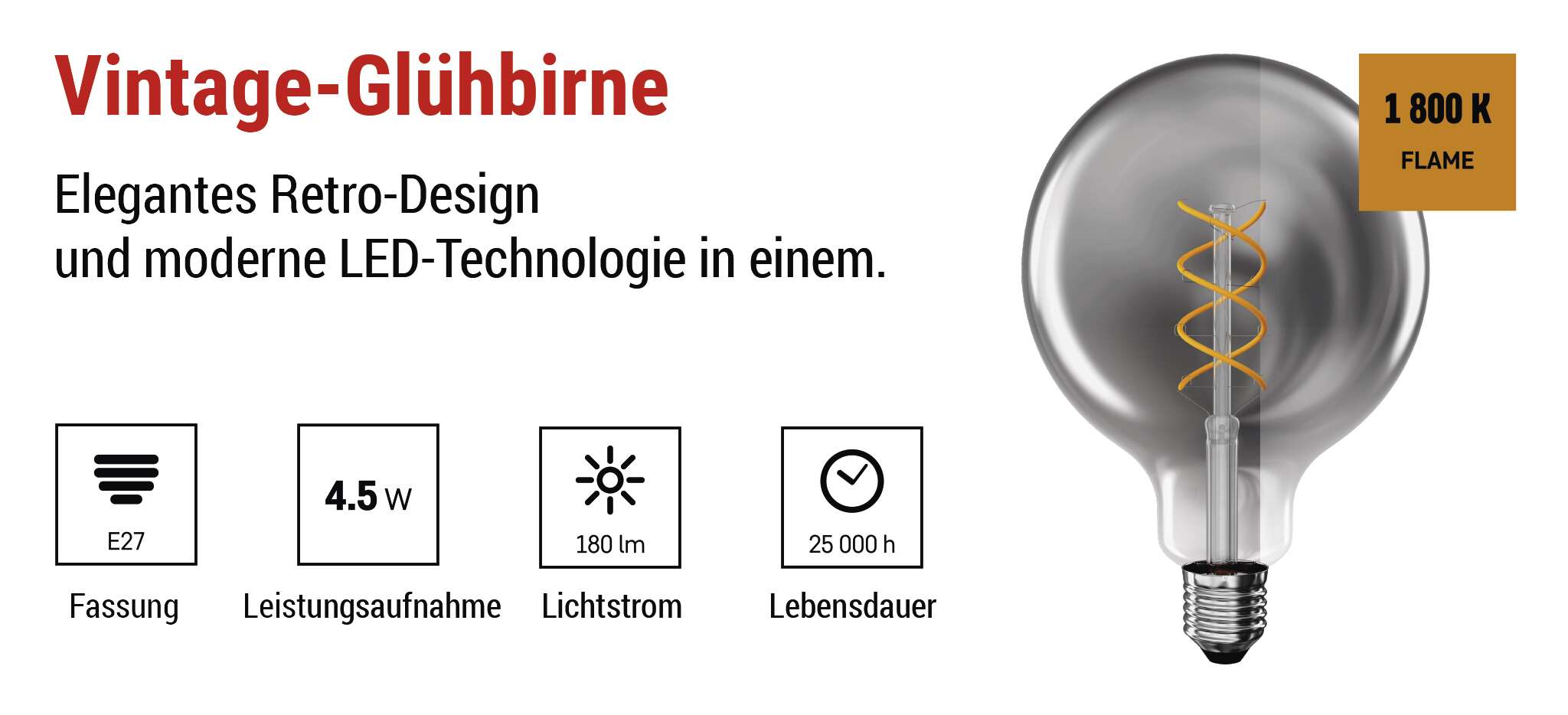 LED Lampe DECO SMOKED G125 / E27 / 4,5 W (19 W) / 180 lm / flame