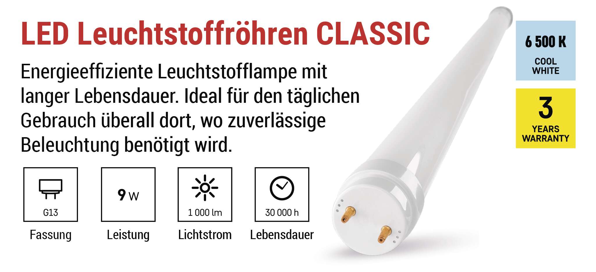 | Sockel (Befestigung der Glühbirne) | G13 |
