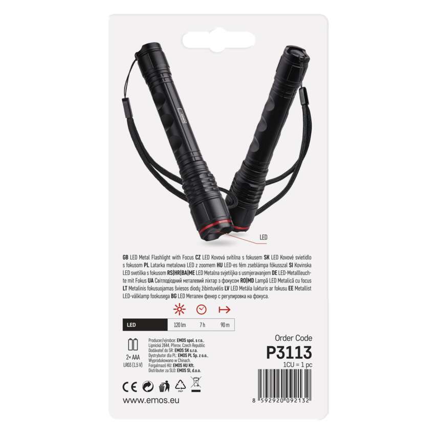 LED Metall-Taschenlampe, 120 lm, 2× AAA, FOKUS
