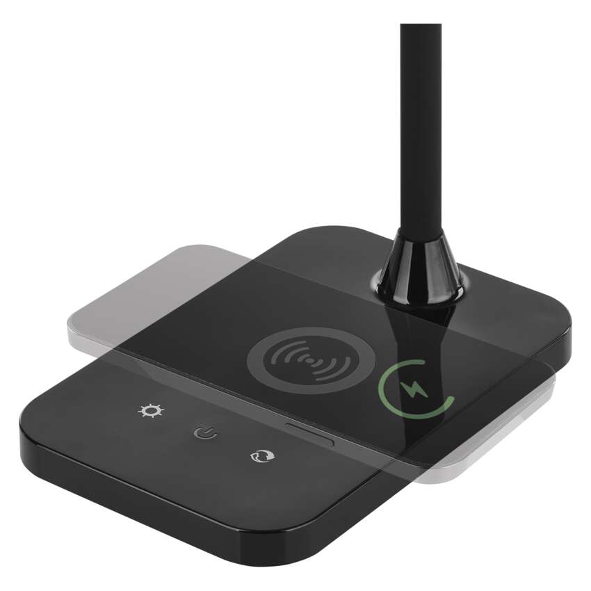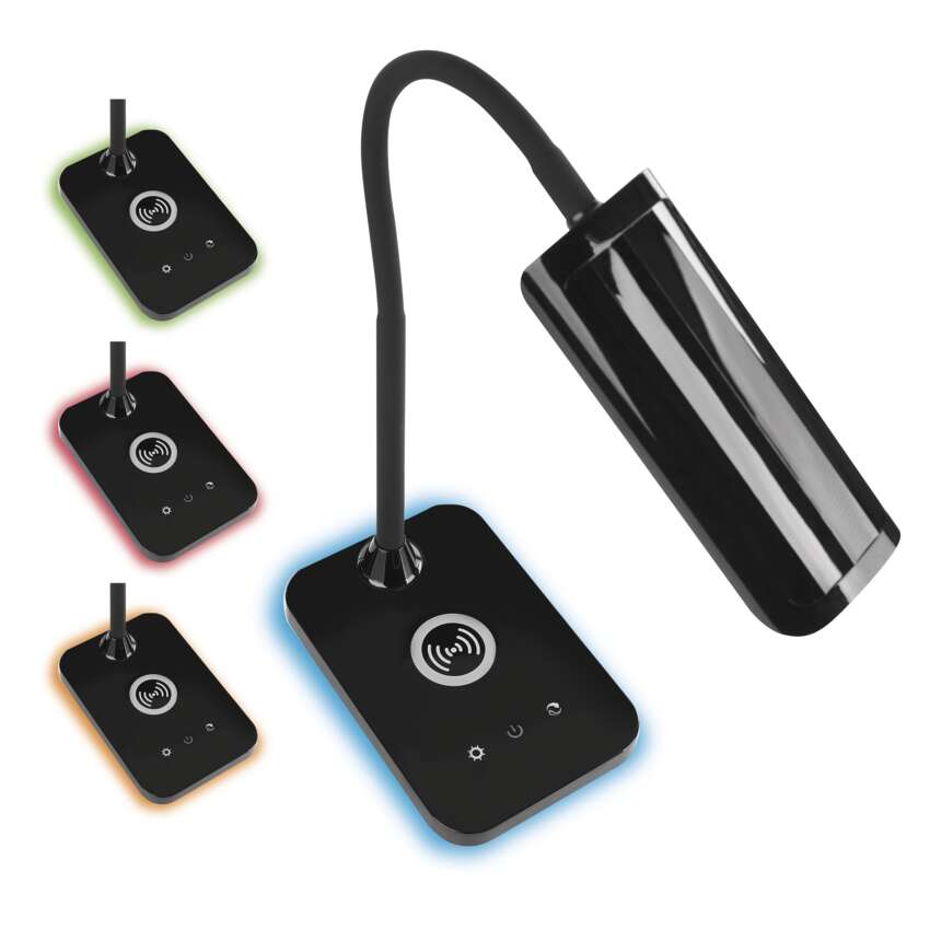 Wir präsentieren unsere multifunktionale Leuchte, die für Ihren modernen Lebensstil entworfen wurde. Diese Lampe verfügt über einen beleuchteten Sockel in vier verschiedenen Farben, der deinem Raum ein stilvolles Element hinzufügt. Mit der Möglichkeit, elektronische Geräte schnurlos und per USB aufzuladen, hast du immer genug Strom.