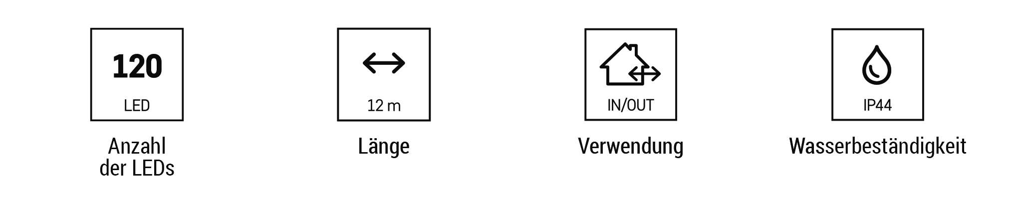 Dank der IP44 Klassifizierung ist diese Kette für den Innen- und Außenbereich geeignet. Sie ist resistent gegen Feuchtigkeit, niedrige Temperaturen und leichte Verschmutzungen, so dass Sie sie sowohl am Weihnachtsbaum im Wohnzimmer als auch an der Pergola, dem Balkon oder dem Außengeländer verwenden können. Die Stromversorgung über einen 31 V DC Adapter sorgt für maximale Sicherheit auch im Langzeitbetrieb.