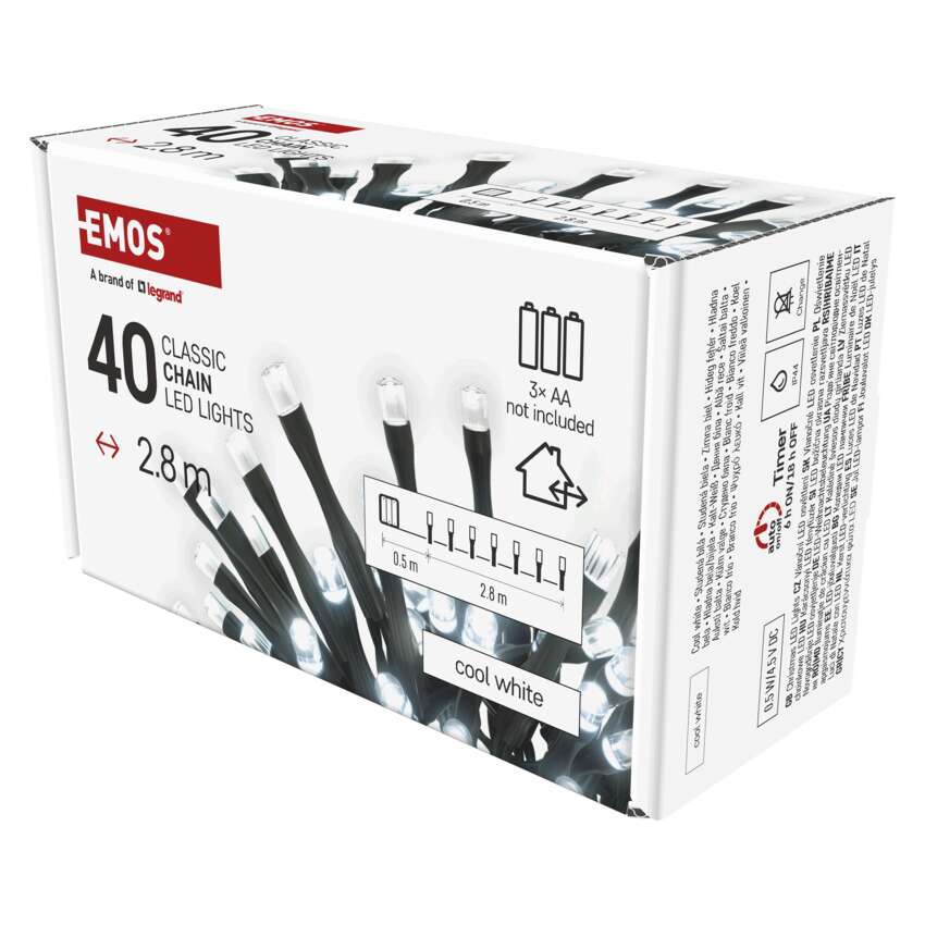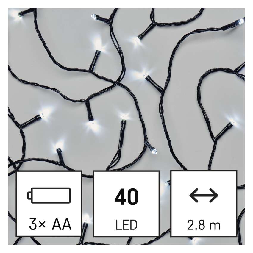 LED Weihnachtliche Lichterkette, 2,8 m, 3x AA, Außen und Innen, Kaltweiß, Timer