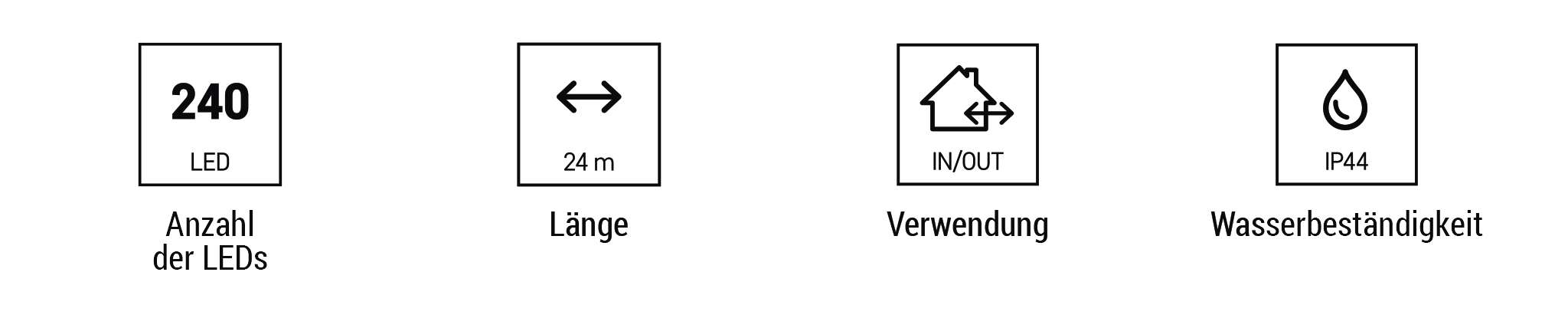 Dank der IP44 Klassifizierung ist diese Kette für den Innen- und Außenbereich geeignet. Sie ist resistent gegen Feuchtigkeit, niedrige Temperaturen und leichte Verschmutzungen, so dass man sie sowohl am Weihnachtsbaum im Wohnzimmer als auch an einer Pergola, einem Balkon oder einem Geländer im Freien verwenden kann. Die Stromversorgung über einen 31 V DC Adapter sorgt für maximale Sicherheit auch im Langzeitbetrieb.