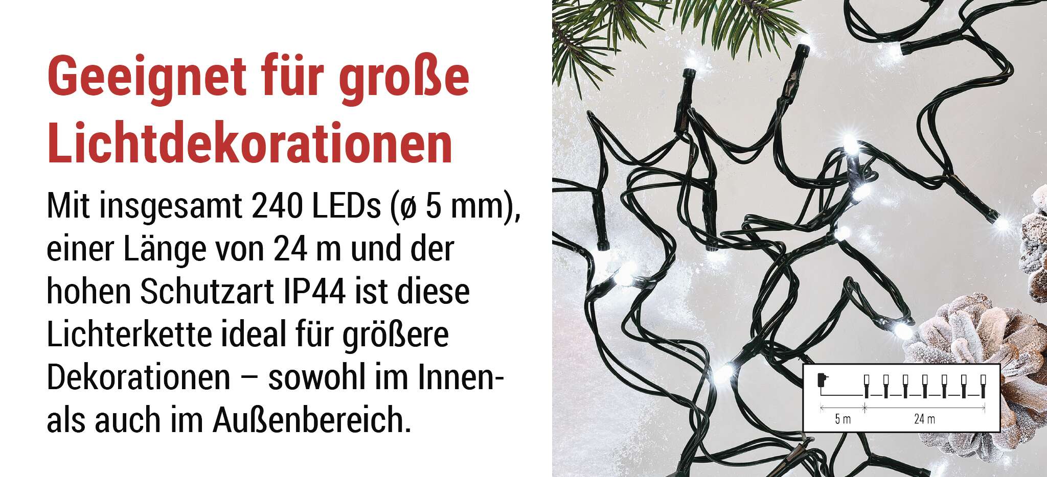 LED Weihnachtliche Lichterkette, 24 m, Außen/Innen, kaltweiß, Programme, Timer