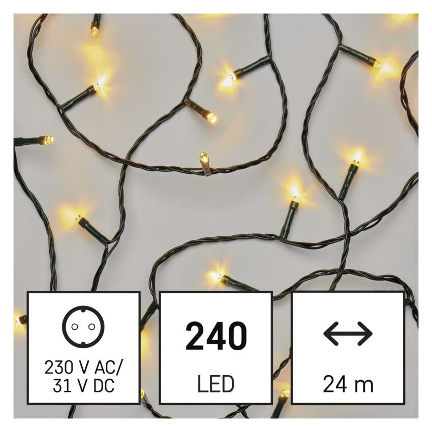 EMOS CLASSIC LED Ketten sind in verschiedenen Formen erhältlich - klassische Ketten, Cluster und Stalaktiten. Sie sind unverzichtbar, um die richtige festliche Atmosphäre zu schaffen. Sie sehen toll aus an einem traditionellen Weihnachtsbaum, sie eignen sich zum Schmücken von Möbeln, Geländern, Balken oder Türen im Innenbereich.Sie können sie auch im Freien verwenden, um Ihre Sträucher, Bäume, Pergolen, Pavillons usw. zu beleuchten.