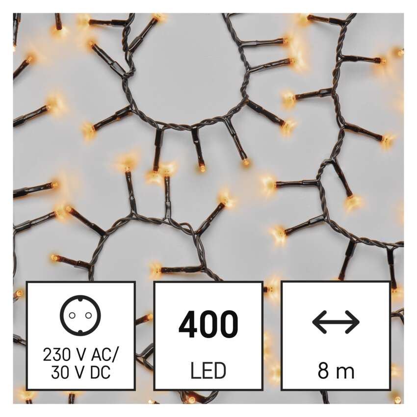 EMOS CLASSIC LED Ketten sind in verschiedenen Formvarianten erhältlich - klassische Ketten, Cluster und Stalaktiten. Sie sind unverzichtbar, um die richtige festliche Atmosphäre zu schaffen. Sie sehen toll aus auf traditionellen Weihnachtsbäumen, sie eignen sich zum Schmücken von Möbeln, Geländern, Balken oder Türen im Innenbereich.Sie können sie auch im Freien verwenden, um Ihre Sträucher, Bäume, Pergolen, Pavillons usw. zu beleuchten.