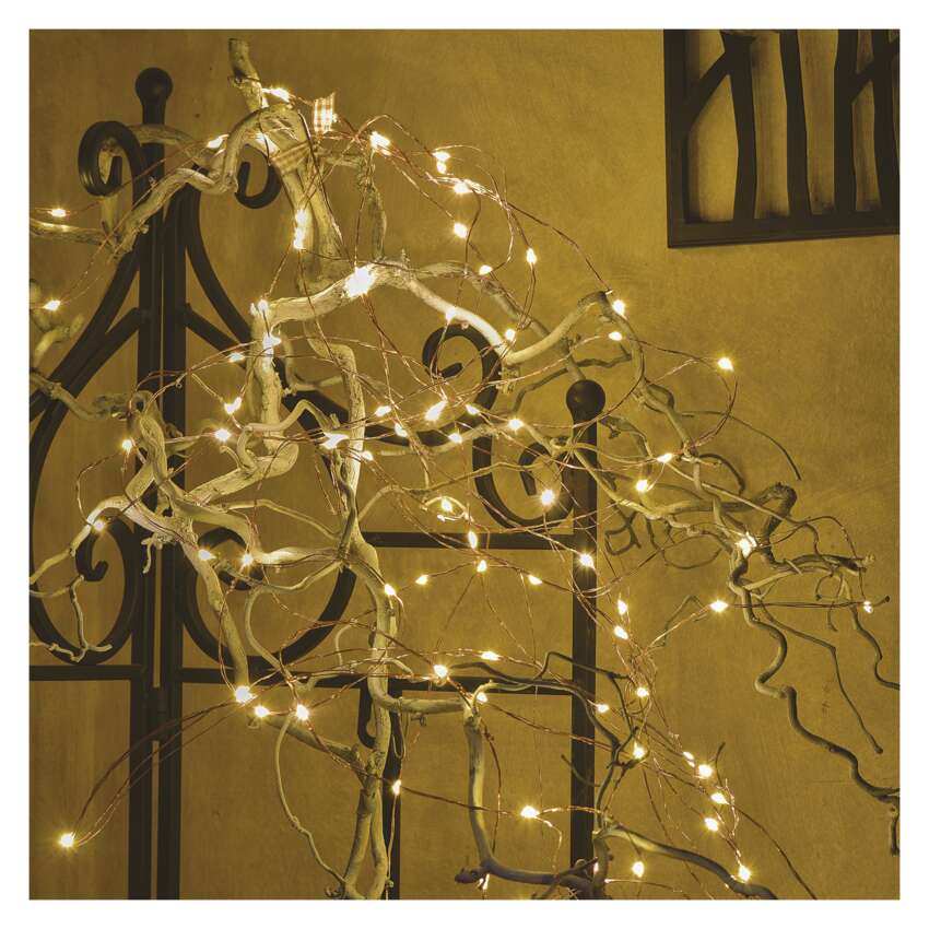 LED Weihnachtliche Nano-Kette kupferfarben, 10 m, Außen und Innen, warm-weiß, Timer
