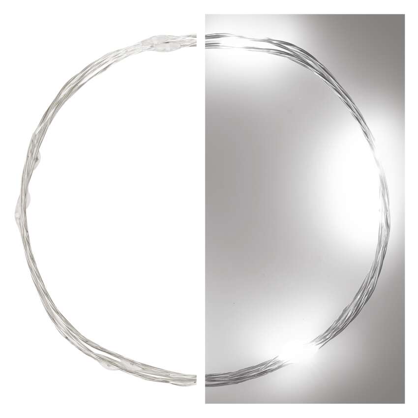 LED Weihnachtliche Nano-Kette silberfarben, 0,9 m, 2x AA, Innen, Kaltweiß, Timer