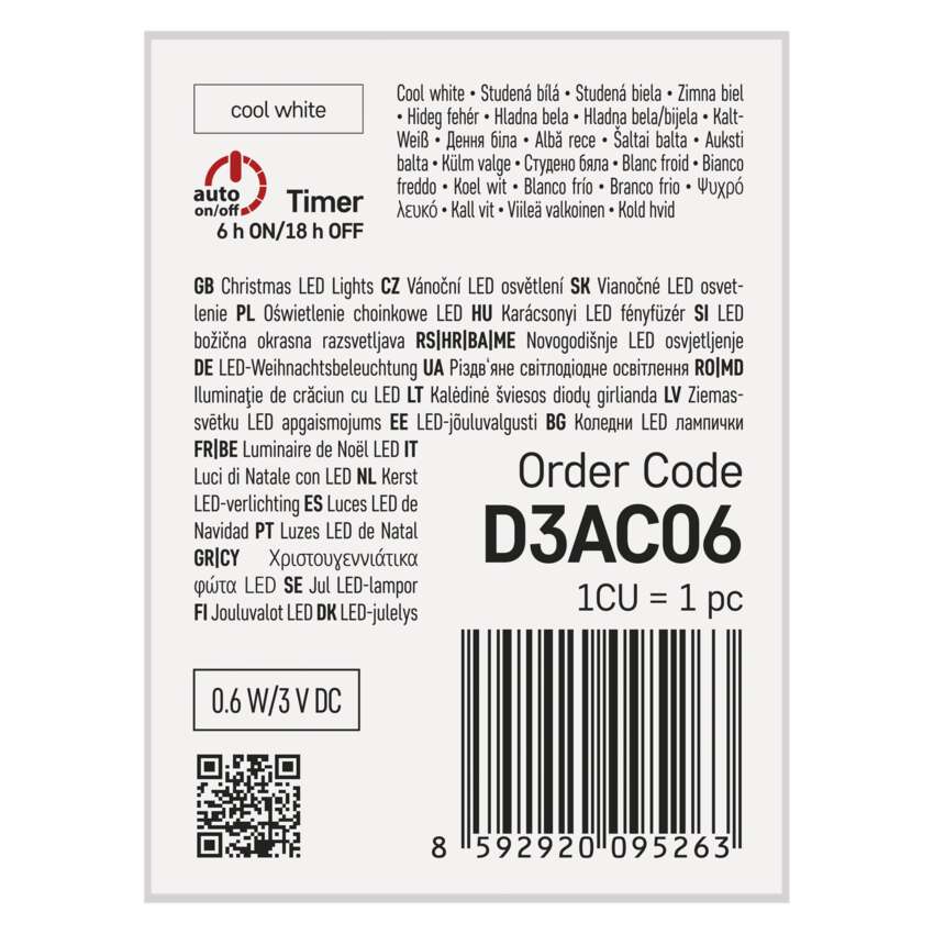 Um nicht nur den Weihnachtsbaum zu beleuchten, bieten wir unter der Marke EMOS eine Vielzahl von LED-Ketten an, die sich durch geringen Stromverbrauch und lange Lebensdauer auszeichnen. Sie haben die Wahl zwischen reinen Innenleuchten (IP20), reinen Außenleuchten (IP44) oder batteriebetriebenen Strings, die sich ideal für die Dekoration von Bereichen ohne Zugang zu einer Steckdose eignen. Es sind vier verschiedene LED-Lichterketten erhältlich, die sich in Größe und Form der LEDs unterscheiden - NANO - CLASSIC - CHERRY - TRADITIONAL. Entscheidende Kriterien für die Wahl der richtigen Kette sind ihre Länge, die Anzahl der LEDs und die Farbe des Lichts.
