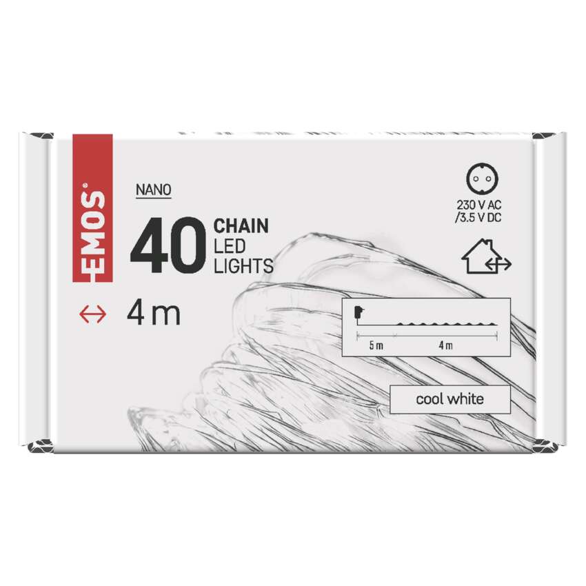 LED Weihnachtliche Nano-Kette silberfarben, 4 m, Außen und Innen, Kaltweiß, Timer