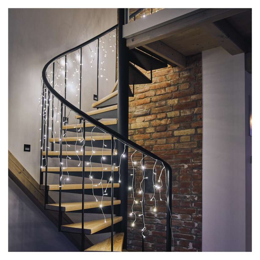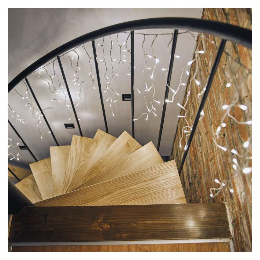 Die CLASSIC - multifunktionalen Stalaktiten (Eiszapfen) sind eine der "zweidimensionalen" Beleuchtungslösungen. Bei dieser Form der Beleuchtung ist jede herabhängende Kette mit LED-Lichtern unterschiedlich lang und erweckt den Eindruck eines natürlichen Stalaktiten. Mit den Ketten kann man einen von acht voreingestellten Lichtmodi wählen, die dann jeden Raum erhellen und Kinder und Erwachsene gleichermaßen erfreuen. Der Basismodus lässt alle Lichter dauerhaft leuchten, während die übrigen sieben Modi eine Kombination aus verschiedenen Blink-, Ausschalt- und Einschaltmodi sind. Du kannst Treppen, Geländer schmücken, Lichter in deine Fenster stellen oder sie an Balkone hängen. Du kannst auch eine weniger traditionelle Verwendung ausprobieren und sie an einem Tor, Zaun oder einer Pforte anbringen. Die Lichter werden am Giebel deines Hauses auffallen.Mit der Möglichkeit, verschiedene Beleuchtungsmodi einzustellen, werden sie sowohl diejenigen ansprechen, die eine subtile und statische Lichtdekoration bevorzugen, als auch diejenigen, die eine dynamische Lichtdekoration suchen.