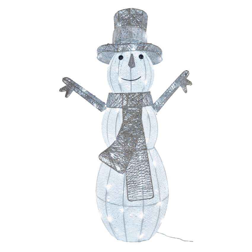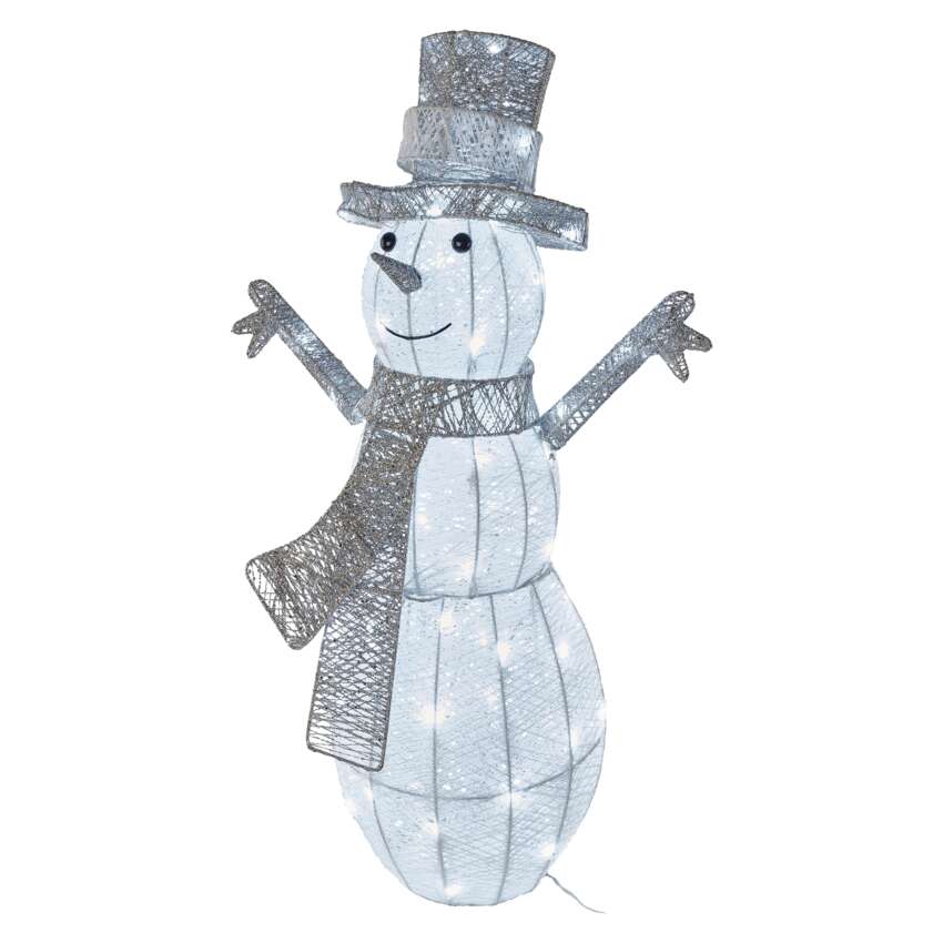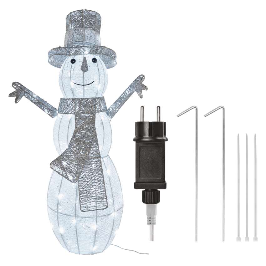 LED Weihnachts-Schneemann Rattan, 82 cm, Außen und Innen, Kaltweiß, Timer