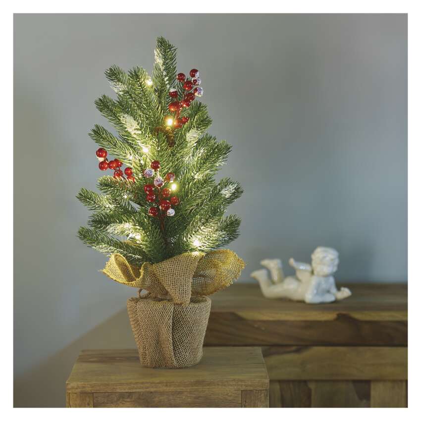 LED Weihnachtsbaum verschneit, 52 cm, 3x AA, Innen, warmweiss, Timer