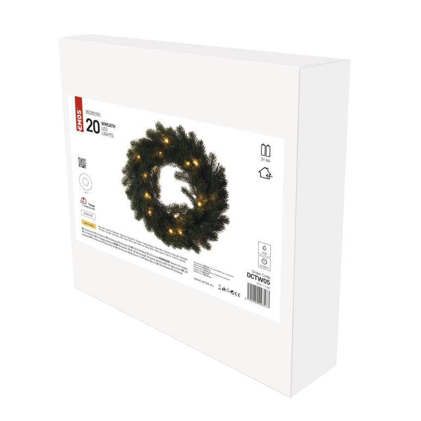 LED Weihnachtskranz, 40 cm, 2x AA, Innen, warmweiss, Timer