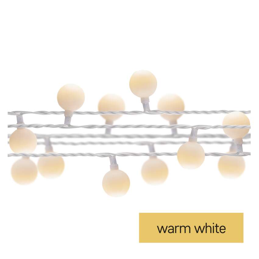 Kirschketten - große Kugeln bieten ein breites Anwendungsspektrum nicht nur bei der Schaffung von Weihnachtsdekoration und Atmosphäre. Ihre LED-Lichter sind in Kugeln mit einem Durchmesser von 2,5 cm untergebracht, die auch im unbeleuchteten Zustand wunderschön sind. Je nach gewählter Länge und Farbe der Lichterkette sorgen sie für kleine Dekorationen im Innenbereich, beleuchten den Weihnachtsbaum und einen größeren Baum im Garten. Perfekt, um eine festliche Atmosphäre bei einer Familienfeier, einer Hochzeit oder einem Kinderfest zu schaffen. Überall am Tag können die weißen Kugeln einer ausgeschalteten CHERRY-Kette als Dekoration dienen, die nach Einbruch der Dunkelheit leuchten und für die richtige Stimmung sorgen. CHERRY-Ketten sind also buchstäblich zwei in einem.