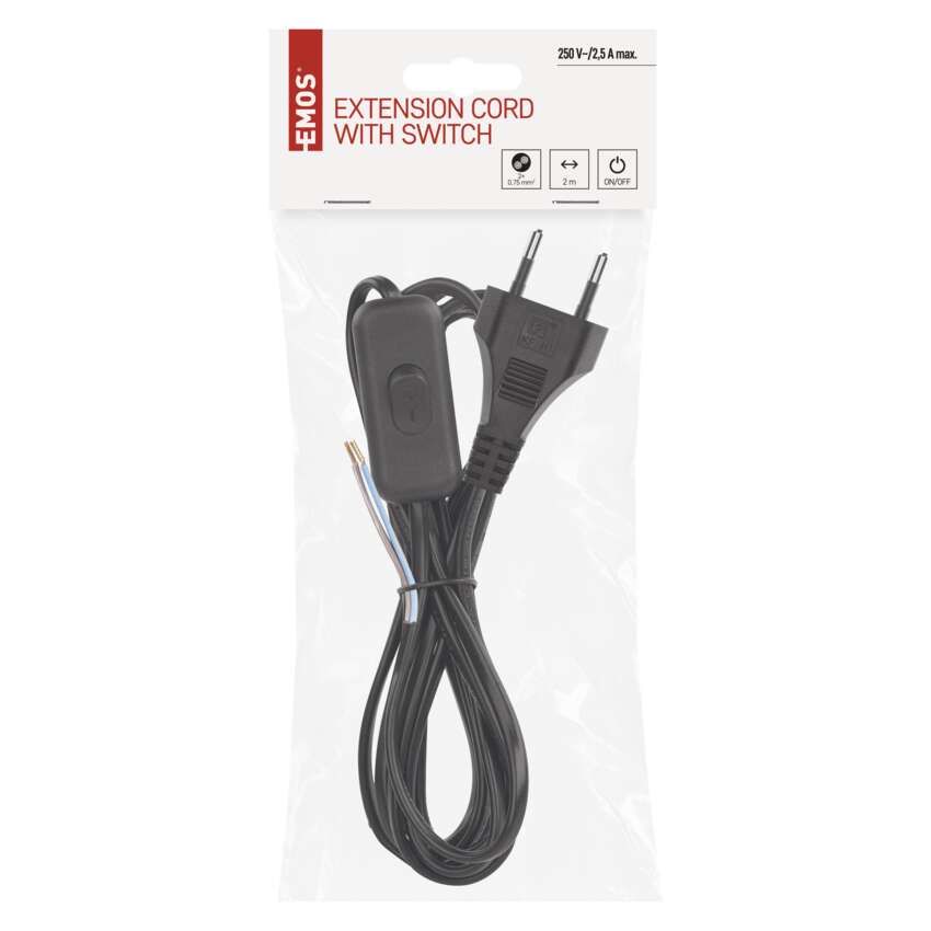 Netzkabel PVC 2x 0,75mm2, Schalter, 2m, schwarz