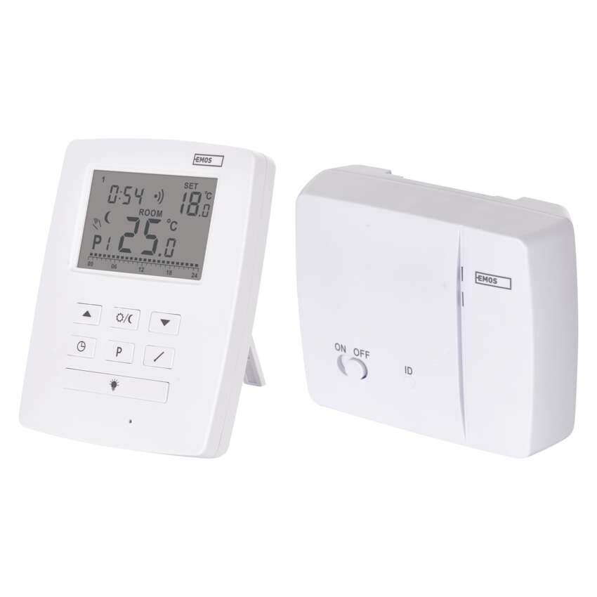 Ein Thermostat, bei dem mehrere Empfänger (bis zu 6) über die Steuereinheit gesteuert werden können, ist das Set P5611OT.2R. Dank der Selbstlernfunktion ist der Thermostat in der Lage, seinen eigenen Pairing-Code zu generieren, den jeder einzelne Empfänger dann speichert.