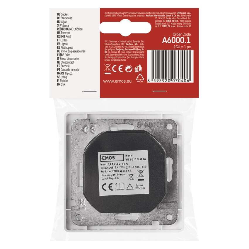 | Produkt | Einfachsteckdose mit Schutzkontakt und USB-Ausgang 2,1 A max. |