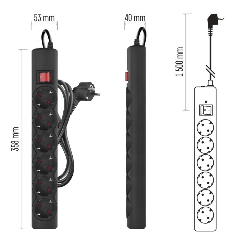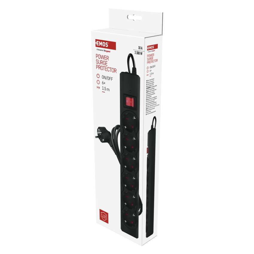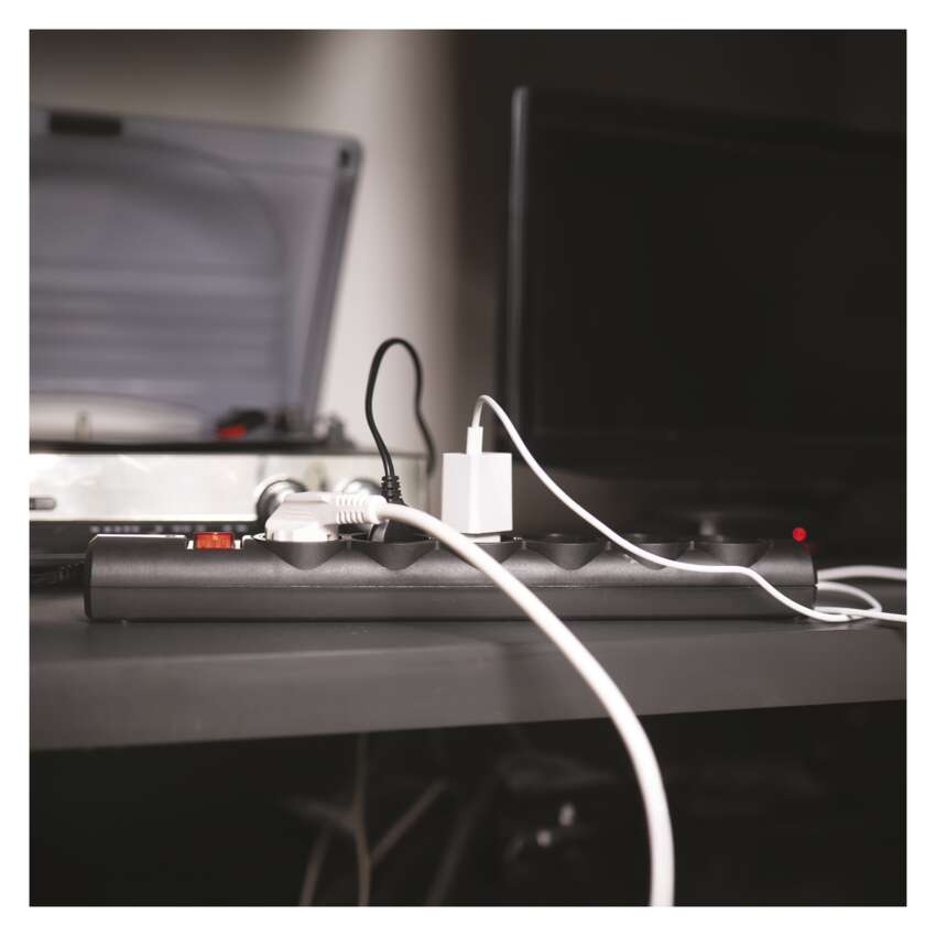 Überspannungsschutz – 6 Steckdosen, 1,5 m, schwarz