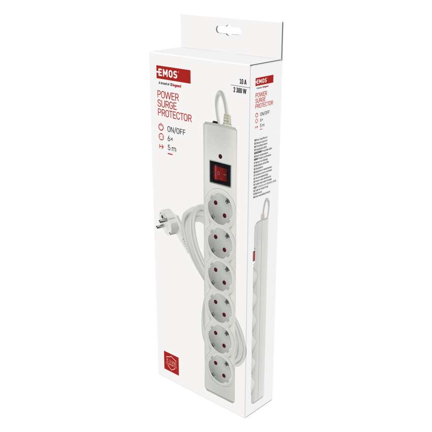 Überspannungsschutz – 6 Steckdosen, 5 m, weiss
