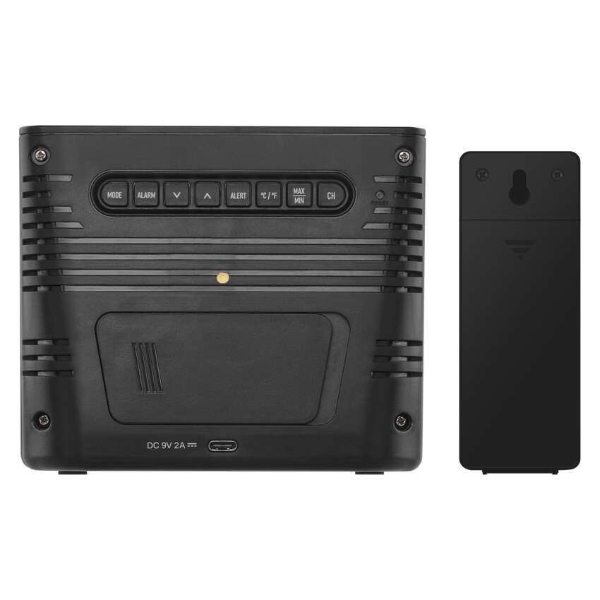 Die Wetterstation verfügt über einen externen Sensor mit einer Reichweite von bis zu 100 m, mit dem Sie die Temperatur an jedem beliebigen Ort, ob im Freien oder im Haus, überwachen können. Sie können zwei weitere zwei kaufen, um einen perfekten Überblick über die Temperatur an verschiedenen Orten zu erhalten.